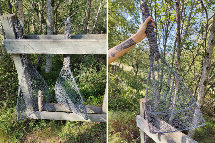 Вопрос: «Найдено во время похода по Шотландии. Деревянная ручка и сетка из проволоки, похоже, сделано вручную»