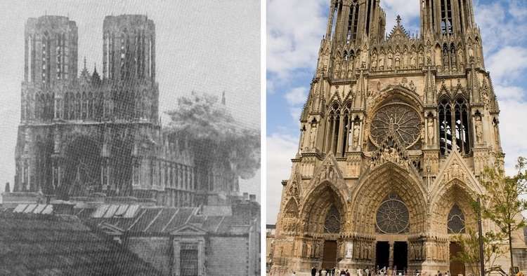 Сильно пострадал во время бомбардировок в Первую мировую войну (в него попало около 300 снарядов). Реконструкция определённых частей собора продолжается до сих пор.