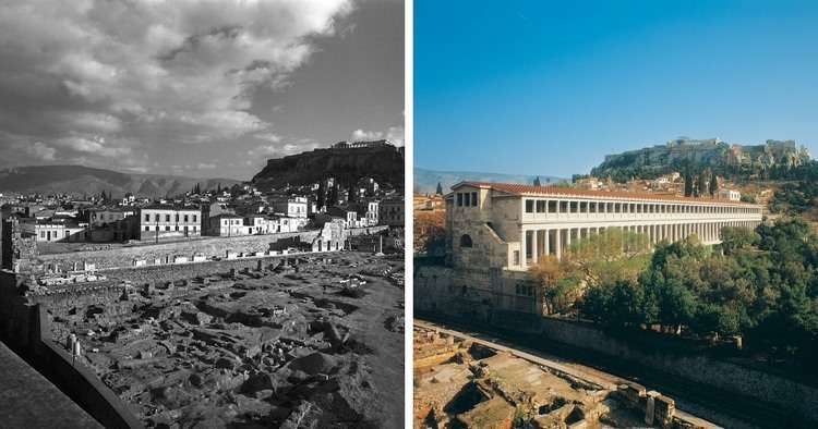 Древнегреческая стоя была разрушена ещё в 267 году и воссоздана в 1953-1956 годах. То есть спустя 1689 лет!
