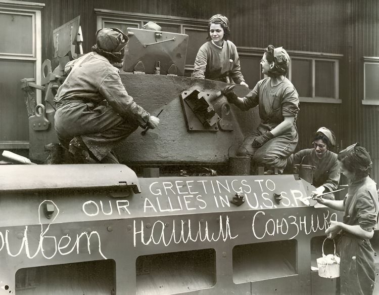В 1941 году в Великобритании была запечатлена подготовка танка для отправки в СССР по ленд-лизу.