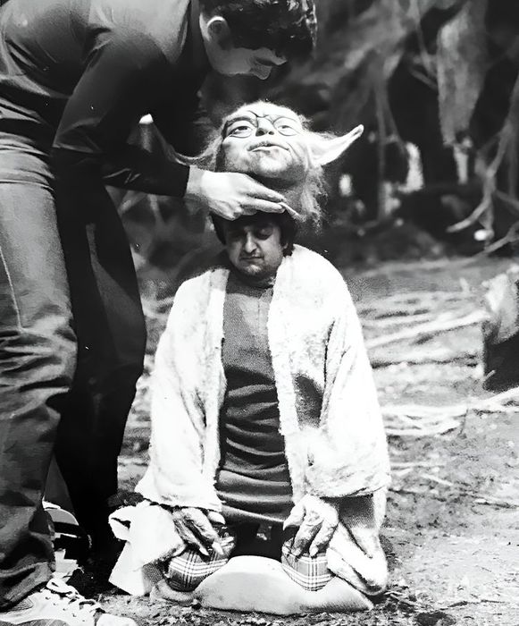 Дип Рой в роли Йоды на съемках фильма «Империя наносит ответный удар»