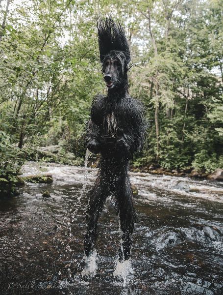 Афганская борзая во время прыжка