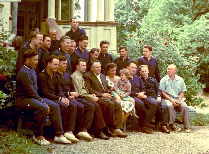 Члены первого отряда космонавтов и группа руководителей на отдыхе, май 1961 года