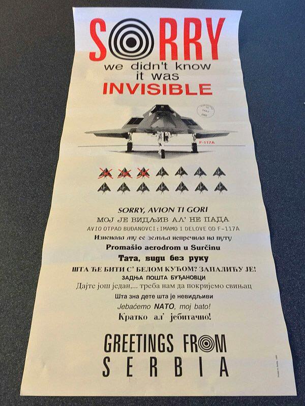 «Извините, мы не знали, что он невидимый» — Сербский плакат, посвященный сбитому 27 марта 1999 г. бомбардировщику F-117А