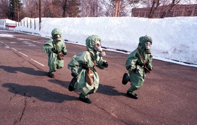 Дети в защитной одежде учатся реагировать на химическую атаку, Кинешма, 5 марта 1999 года