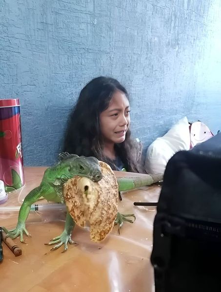 Как тут не расстроиться, когда игуана ворует твой завтрак