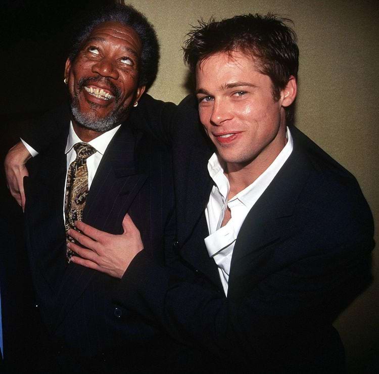 Морган Фримен и Брэд Питт на премьере фильма «Семь» в Нью-Йорке, 1995 год