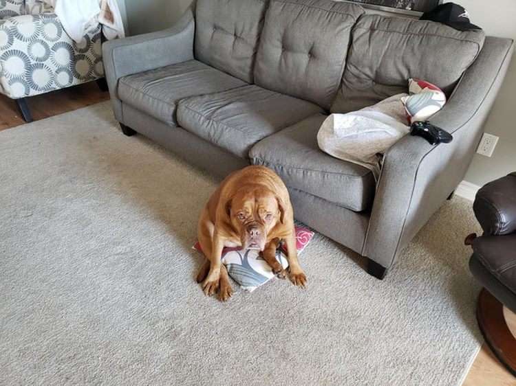 Когда тебе не дают сесть на диван. Но очень хочется!