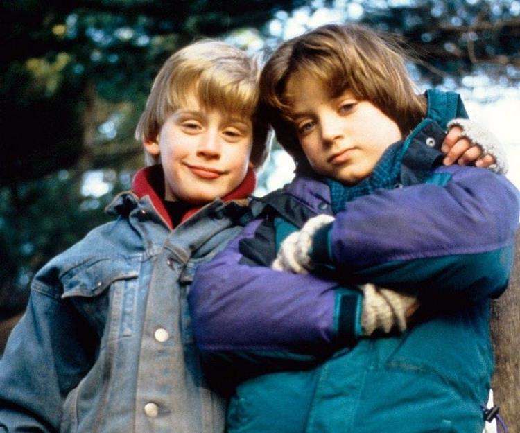 Маколей Калкин и Элайджа Вуд на съёмках фильма «Добрый сынок»