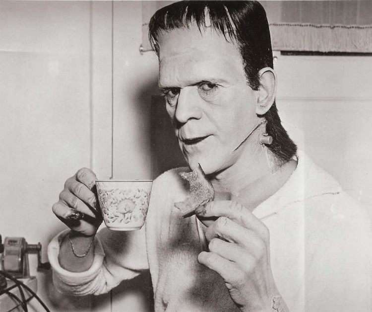 Борис Карлофф на перерыве между дублями «Сына Франкенштейна»