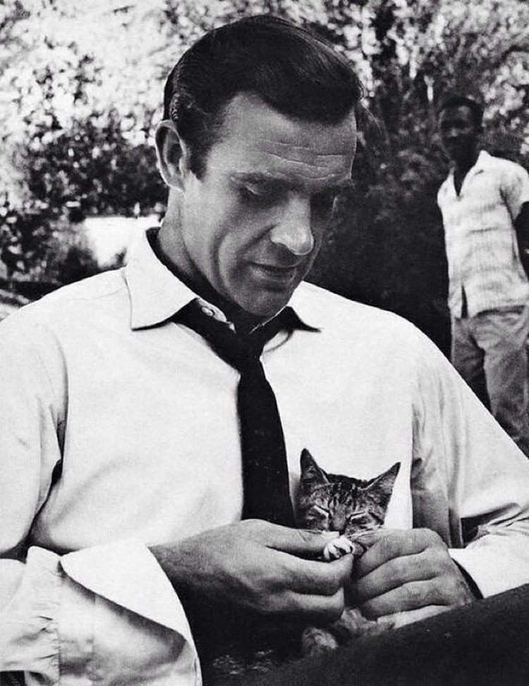 Шон Коннери играет с котёнком за кадром «Доктора Ноу»