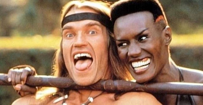 Актёры «Конана-разрушителя» Арнольд Шварценеггер и Грейс Джонс дурачатся