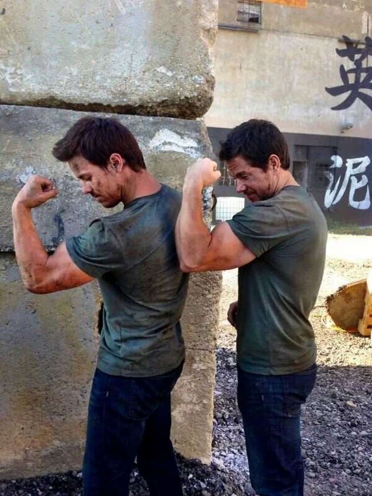 Марк Уолберг и его дублёр для «Трансформеров: Эпоха истребления»