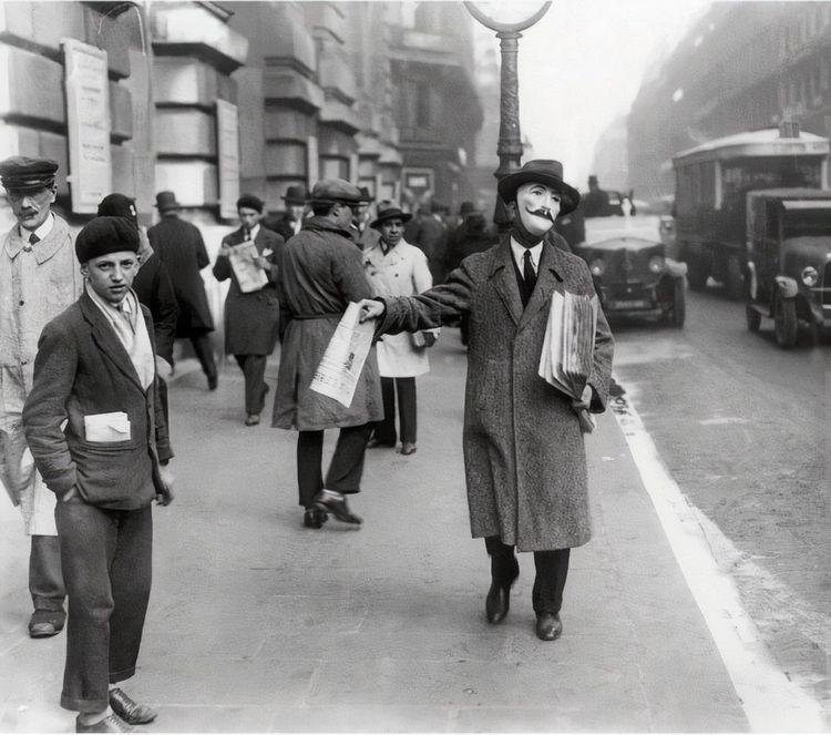 Продавец газет в маске, Париж, 1929 год