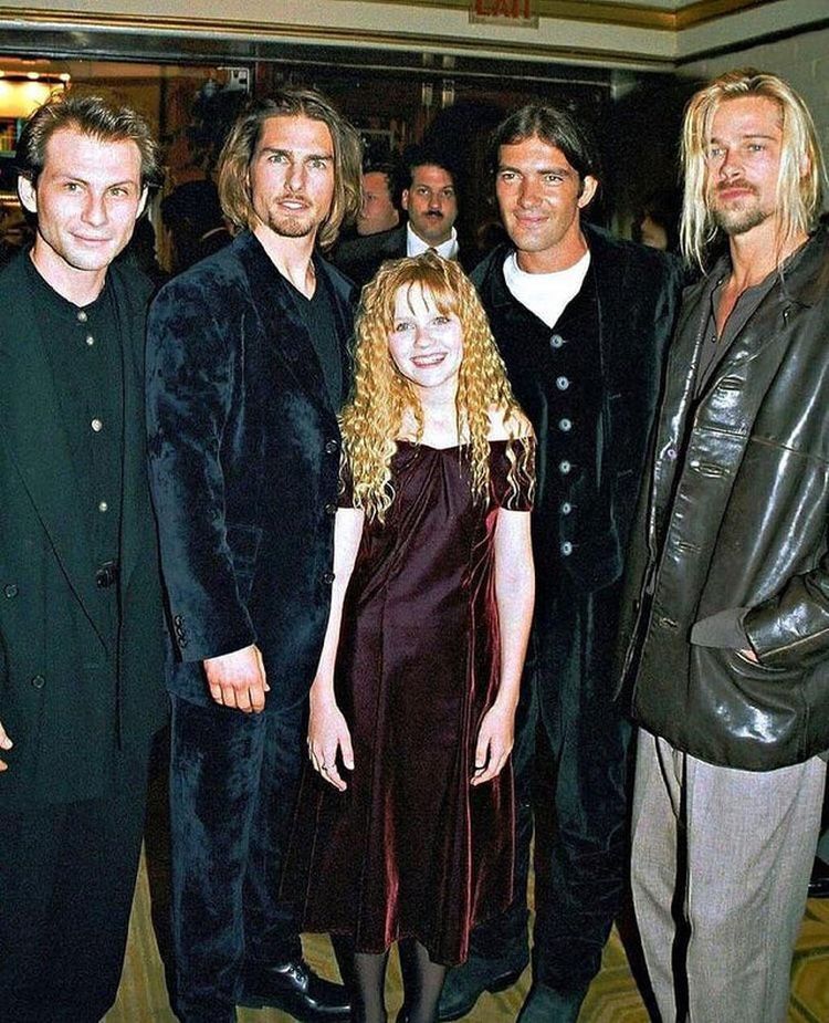 Кристиан Слейтер, Том Круз, Кирстен Данст, Антонио Бандерас и Брэд Питт на премьере фильма «Интервью с вампиром» в 1994 году