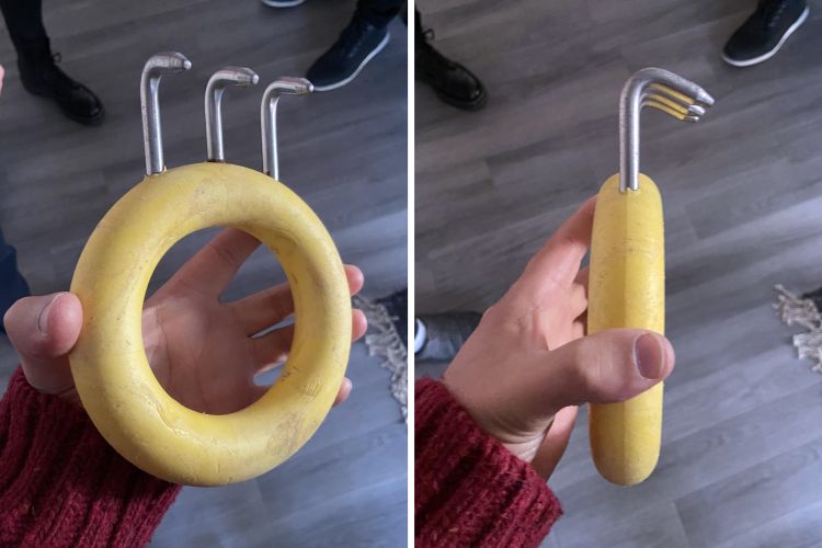 Вопрос: «Пластиковое кольцо с тремя относительно острыми металлическими когтями, найденное на пляже в Шотландии»