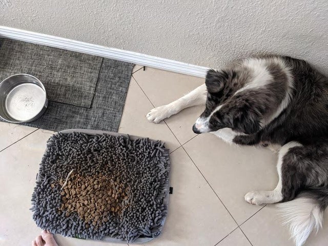 “Он перетаскивает свою еду на коврик и просто смотрит на неё”