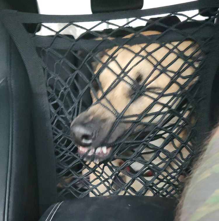 “Он действительно ненавидит то, что не может прокрасться на переднее сиденье… Так что на протяжении получаса он едет вот так”
