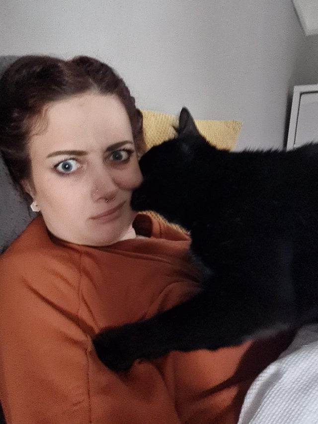 “Моя кошка ведёт себя абсолютно нормально. Вы не видите кошку? Так вот же она, лежит на столешнице”