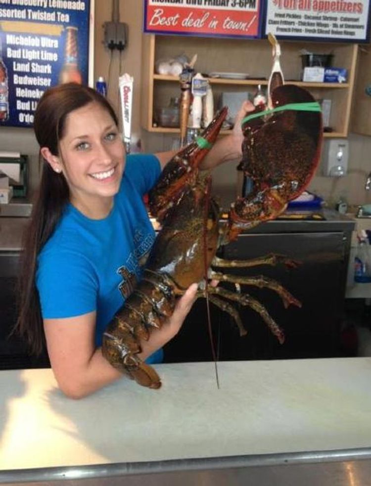 Огромный 80-летний 7-килограммовый лобстер, который мог оказаться на обеденной тарелке, но был спасён и выпущен обратно в Лонг-Айлендский пролив
