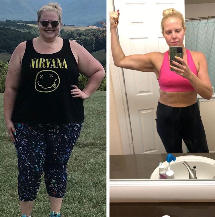 «Я официально избавилась от половины своего веса. В последнее время я много занималась в тренажерном зале и подумала, что эта сравнительная фотография слишком хороша, чтобы ею не поделиться»