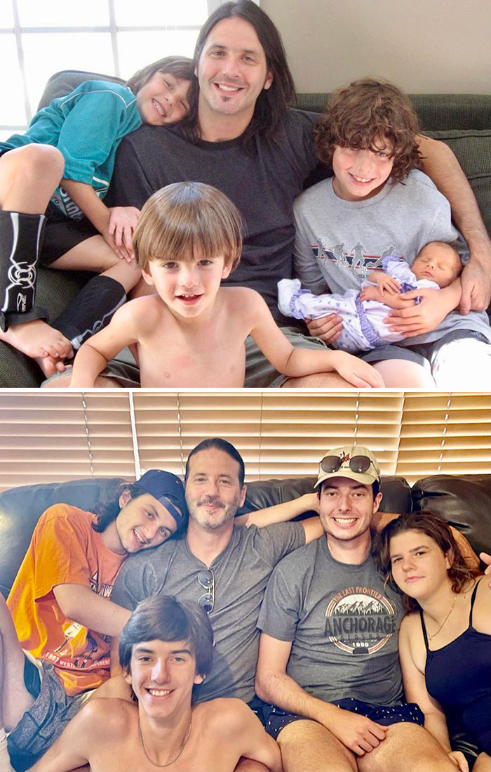 Отец семейства выглядит так, словно за прошедшие 14 лет он постарел на 2 месяца.