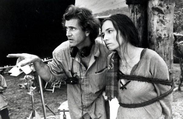 Мел Гибсон и Софи Марсо на съёмочной площадке «Храброго сердца» (1995).