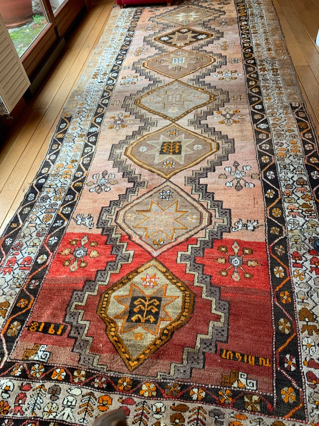 Так этот ковер, купленный в 1992 году, потерял красный цвет, выгорев на солнце