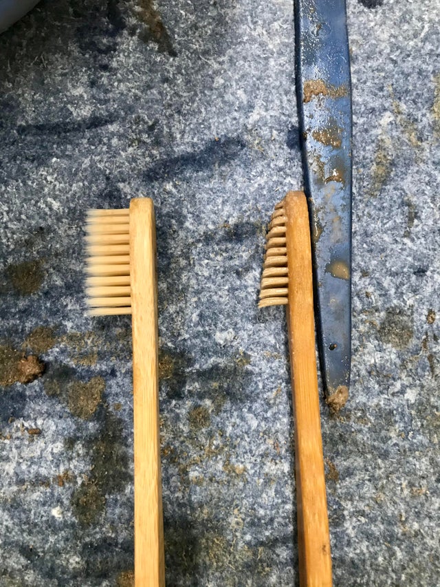 “Моя щетка для гриля после года интенсивного использования по сравнению с новой”