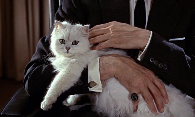 Фанаты Бондианы сразу узнают, кто стоит за загадочным образом с ангорским котом — это Блофельд. Но в этом фильме, как и в следующем, его лицо так и не показывают. Зритель впервые увидит его лишь в пятой части — «Живёшь только дважды».