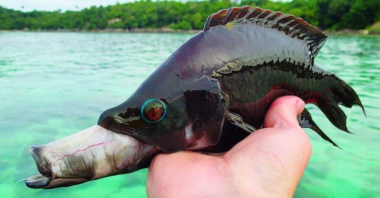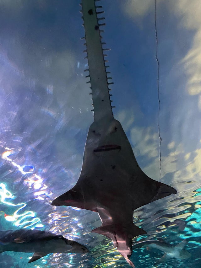Как только рыба-пила находит свою добычу, она насаживает её на зубья по краям пилы