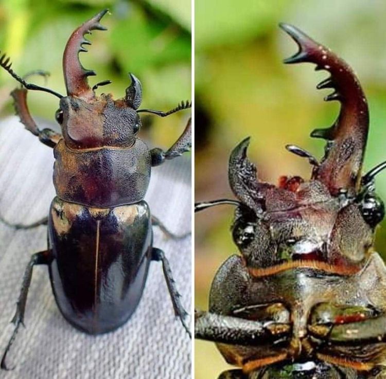 Очень редкий жук с гинандроморфизмом. Левая сторона его тела — мужская, а правая — женская