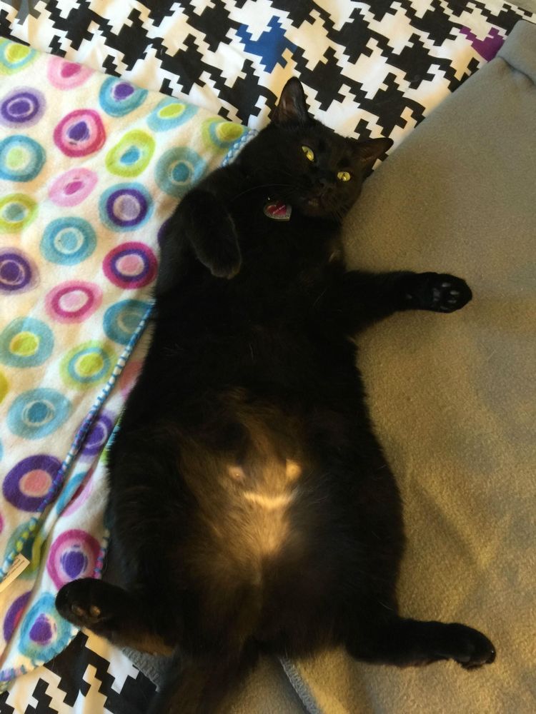 «Это наша кошка Джелли Бин, демонстрирующая пугающий смайлик на своём животе»