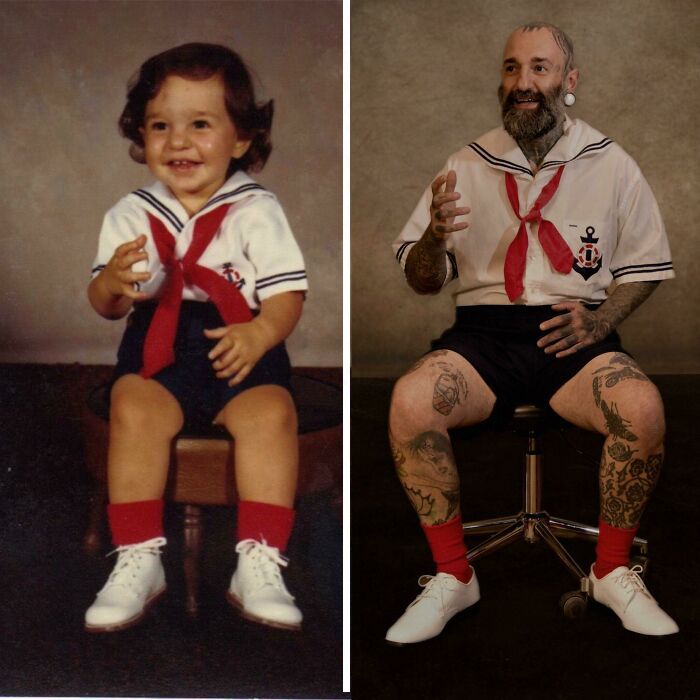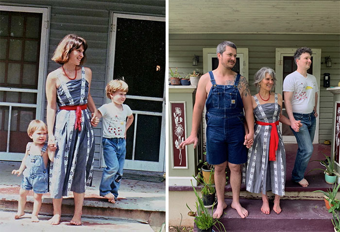Конечно, в сегодняшней жизни тоже есть масса плюсов, но люди всегда будут вспоминать с ностальгией и ноткой грусти о своём прошлом. Но можно повернуть время вспять и ненадолго вернуться в своё детство или юность, воссоздав старые снимки, и люди из нашей статьи справились с этим на отлично!