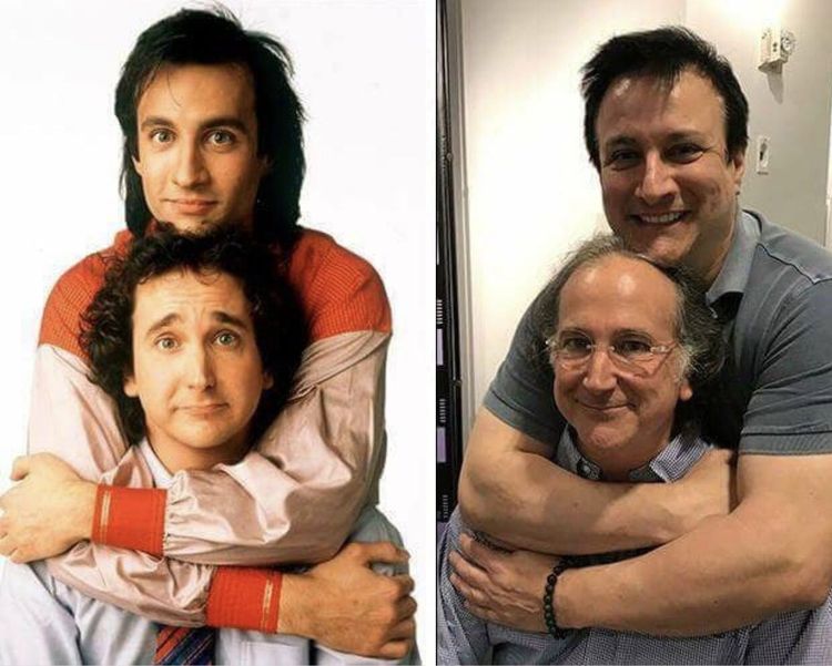 Актёр Бронсон Пинчот и его «двоюродный брат» по сериалу «Идеальные незнакомцы» Марк Линн-Бейкер, 1986 и 2017