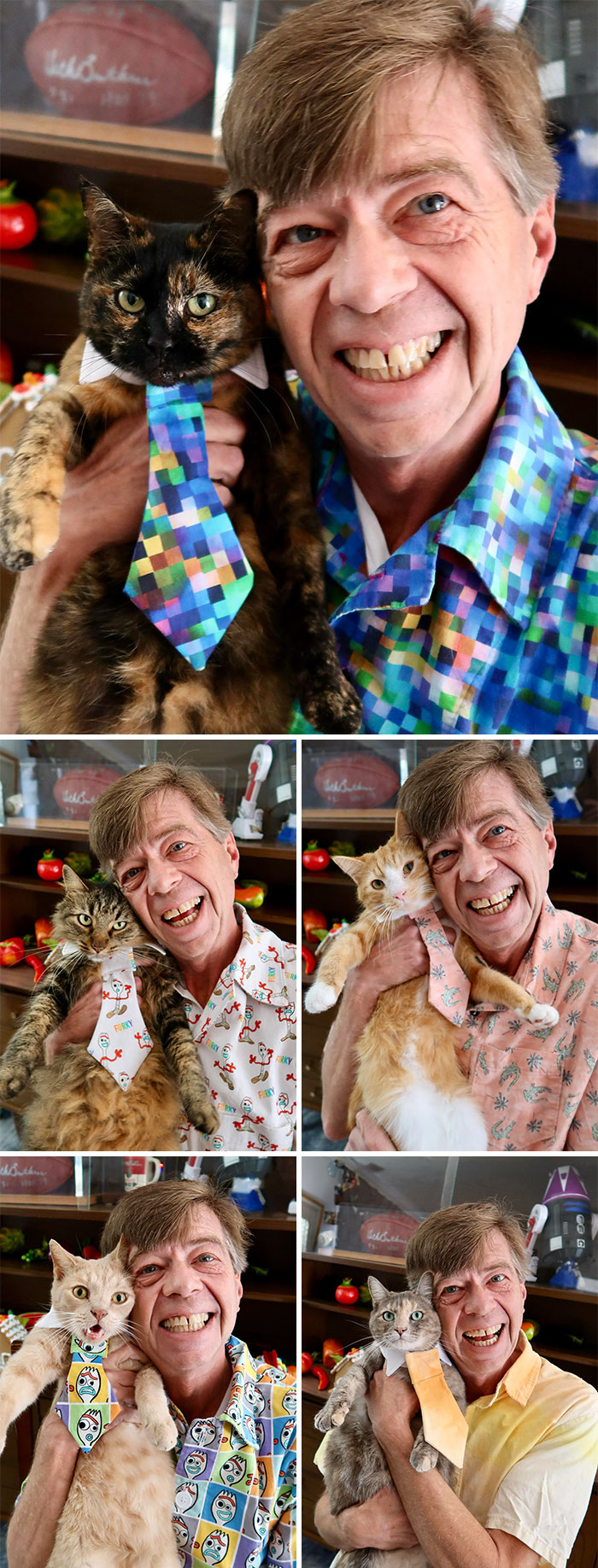 «Сшил себе рубашки и подходящие галстуки для моих 5 кошек. Это было весело. Надеюсь, они вам понравятся»