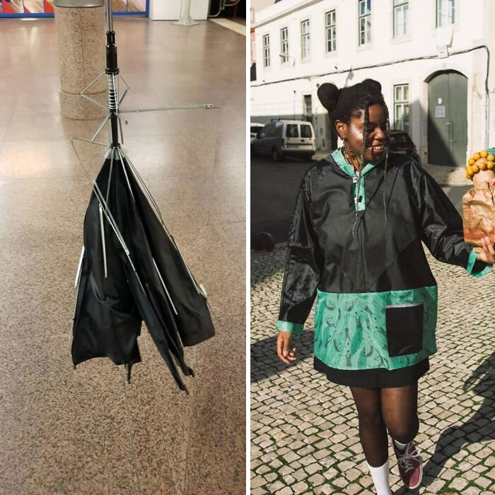 «У меня получился довольно милый плащ из сломанных зонтов»