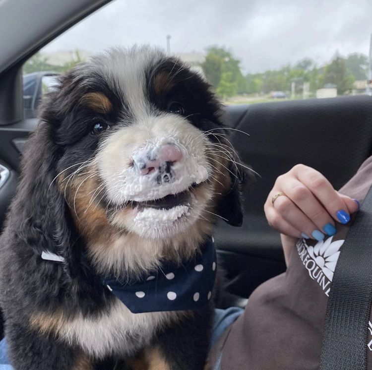 «Это Бунзен. Он только что попробовал свой первый капучино (puppuccino) для собак. Думаем, ему понравилось»