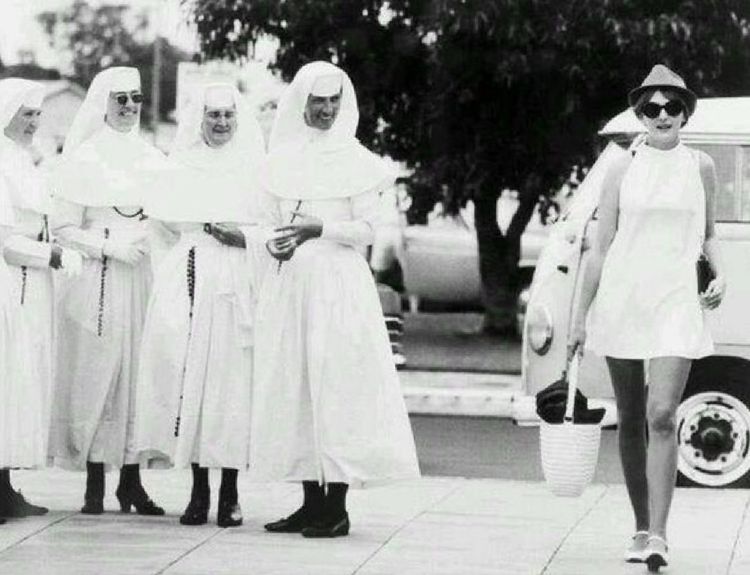Сестры провожают взглядом модную дамочку. Начало 1970-х