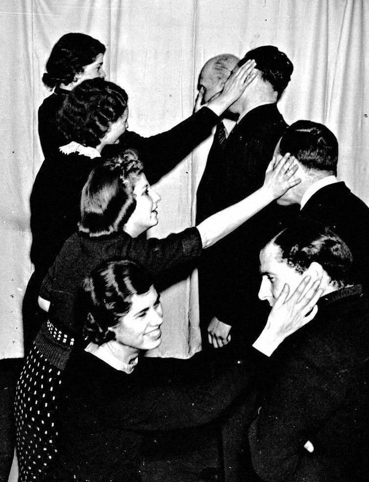 Студентки Ливерпульской драматической школы получают неподдельное удовольствие от урока по художественному нанесению пощечин парням, 1939 год