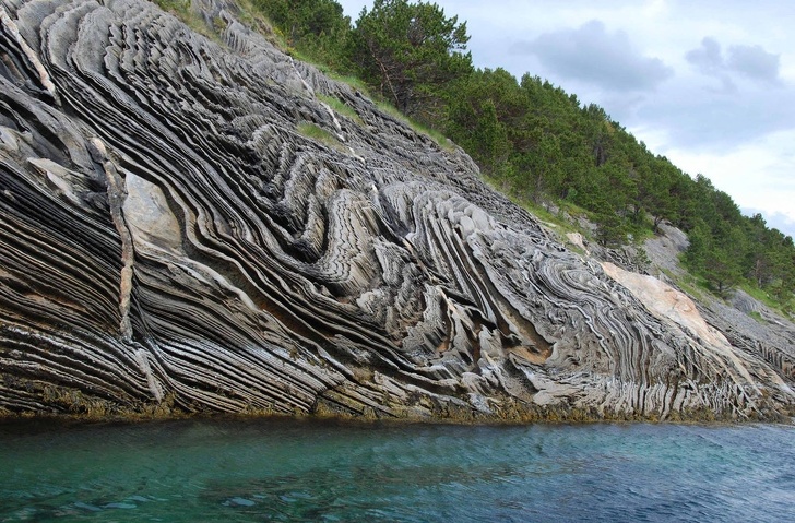 В геологии это явление называется шевронные складки, которые часто образуются в слоистых осадочных породах.