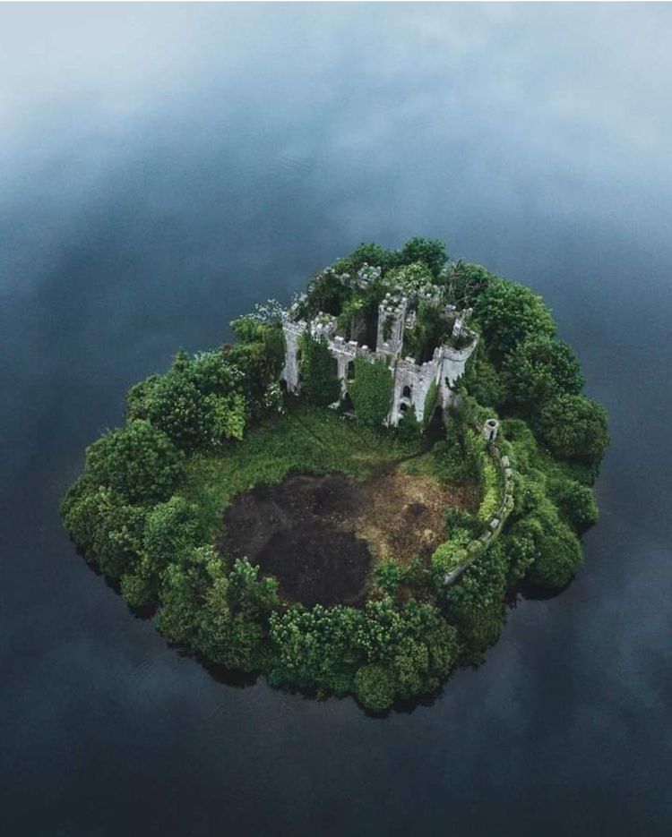 Заброшенный замок МакДермотт, расположенный посреди озера в графстве Роскоммон, Ирландия