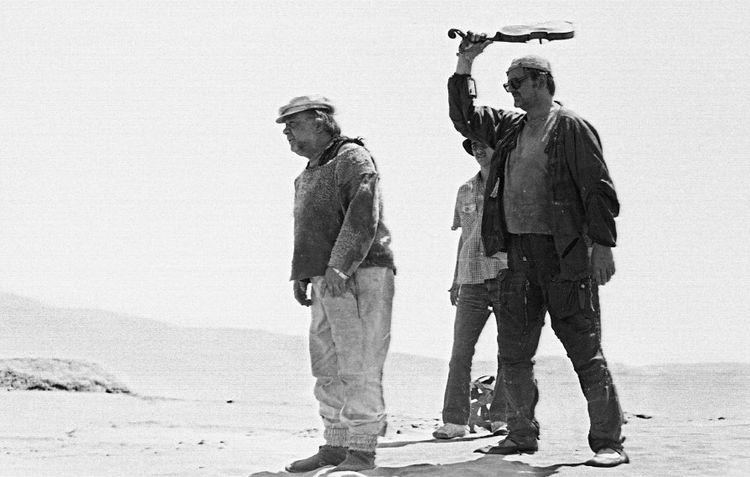 На съемках фильма «Кин–дза–дза!», Туркмения, СССР, 1986 год
