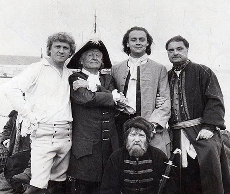 Сергей Паршин, Николай Крюков, Михаил Бочаров, Дмитрий Золотухин и Игорь Бучко на съёмках, 1981 — актёры в исторических образах и за их пределами