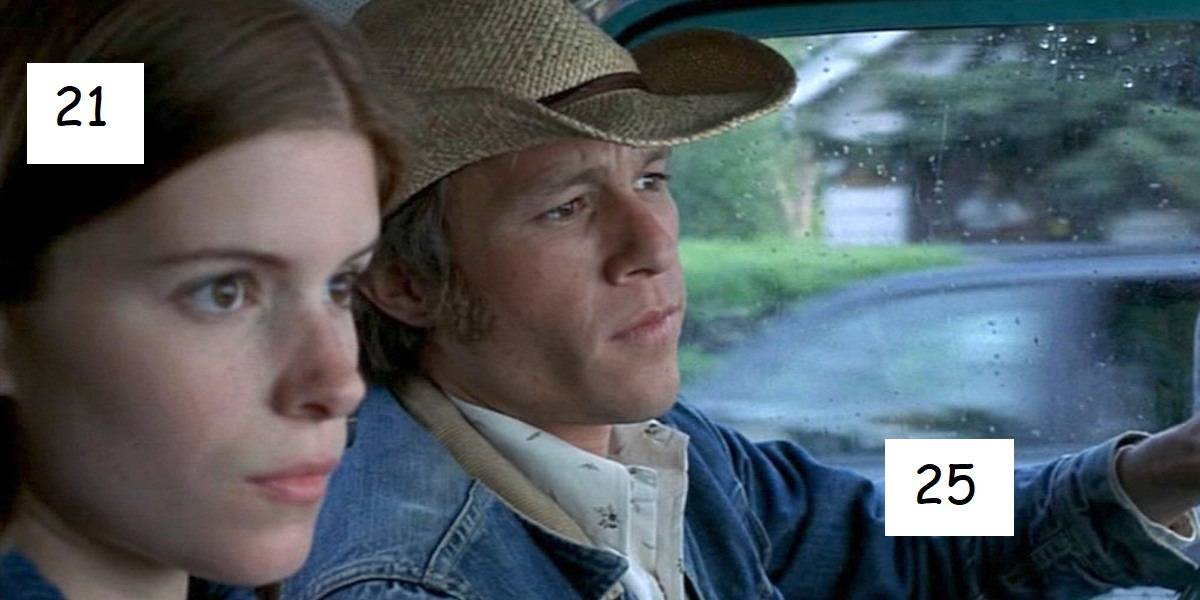 В фильме “Горбатая гора” Хит Леджер играет отца Кейт Мары, хотя старше ее всего на 4 года