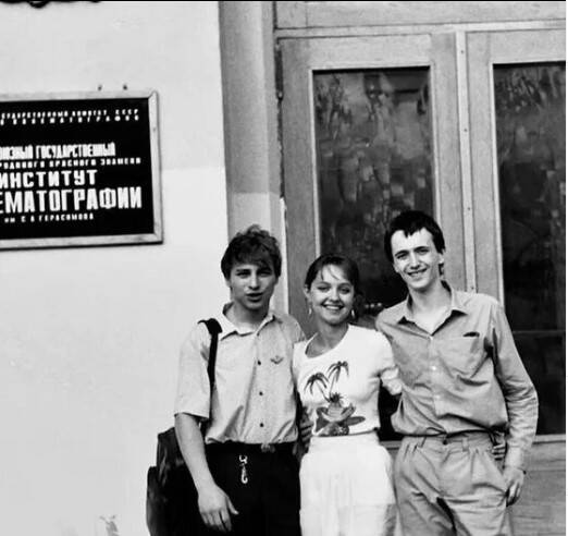 Исполнители ролей Буратино, Мальвины и Пьеро возле ВГИКа в 1986 году
