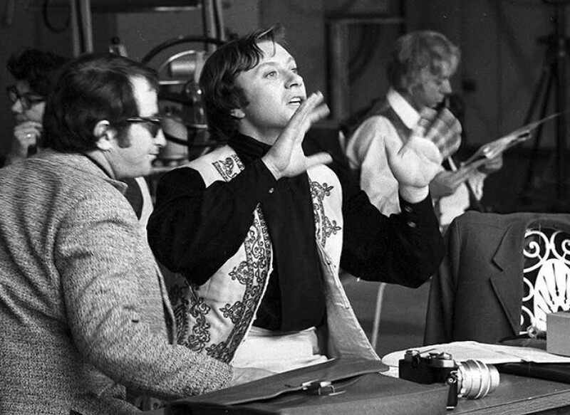 Андрей Миронов на репетиции телеспектакля «Безумный день, или Женитьба Фигаро» в студии «Останкино», 1973 год — артист в работе, сосредоточенный и вдохновлённый.