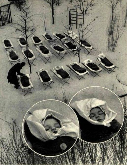 Советские ясли: как малышей укладывали спать на улице в мороз, 1958 год