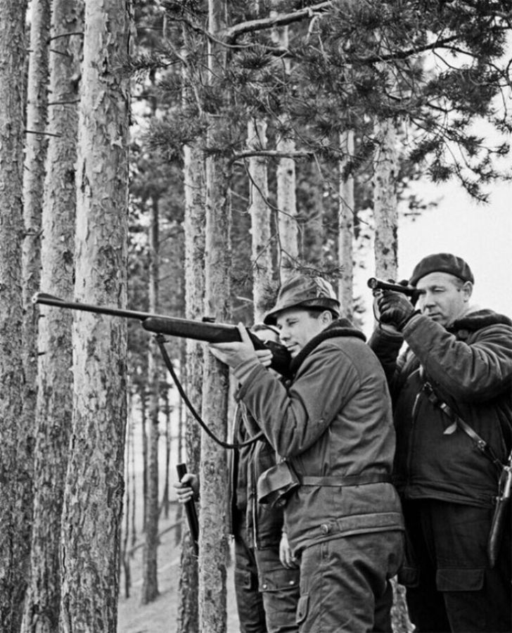 Юрий Гагарин и Алексей Леонов на охоте, октябрь 1966 года.