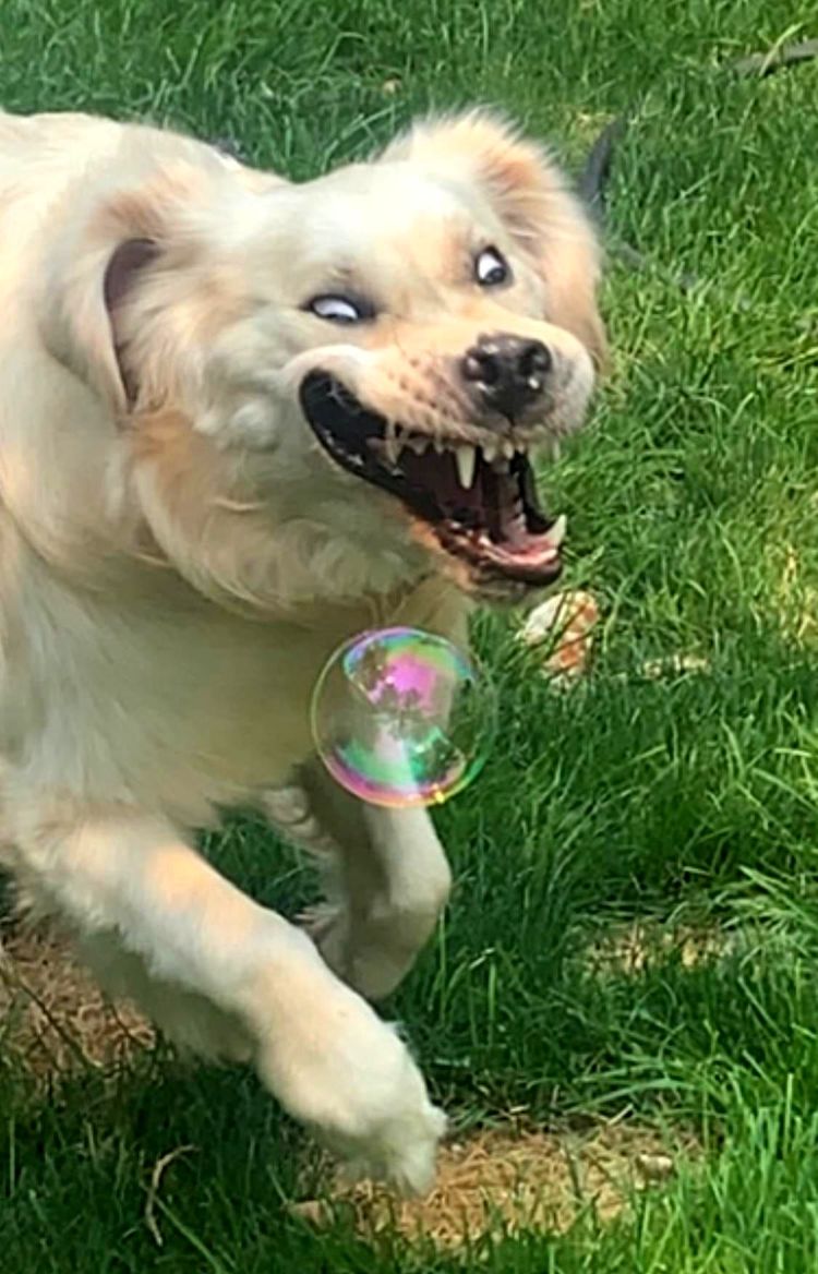 «Моя собака очень любит мыльные пузыри»